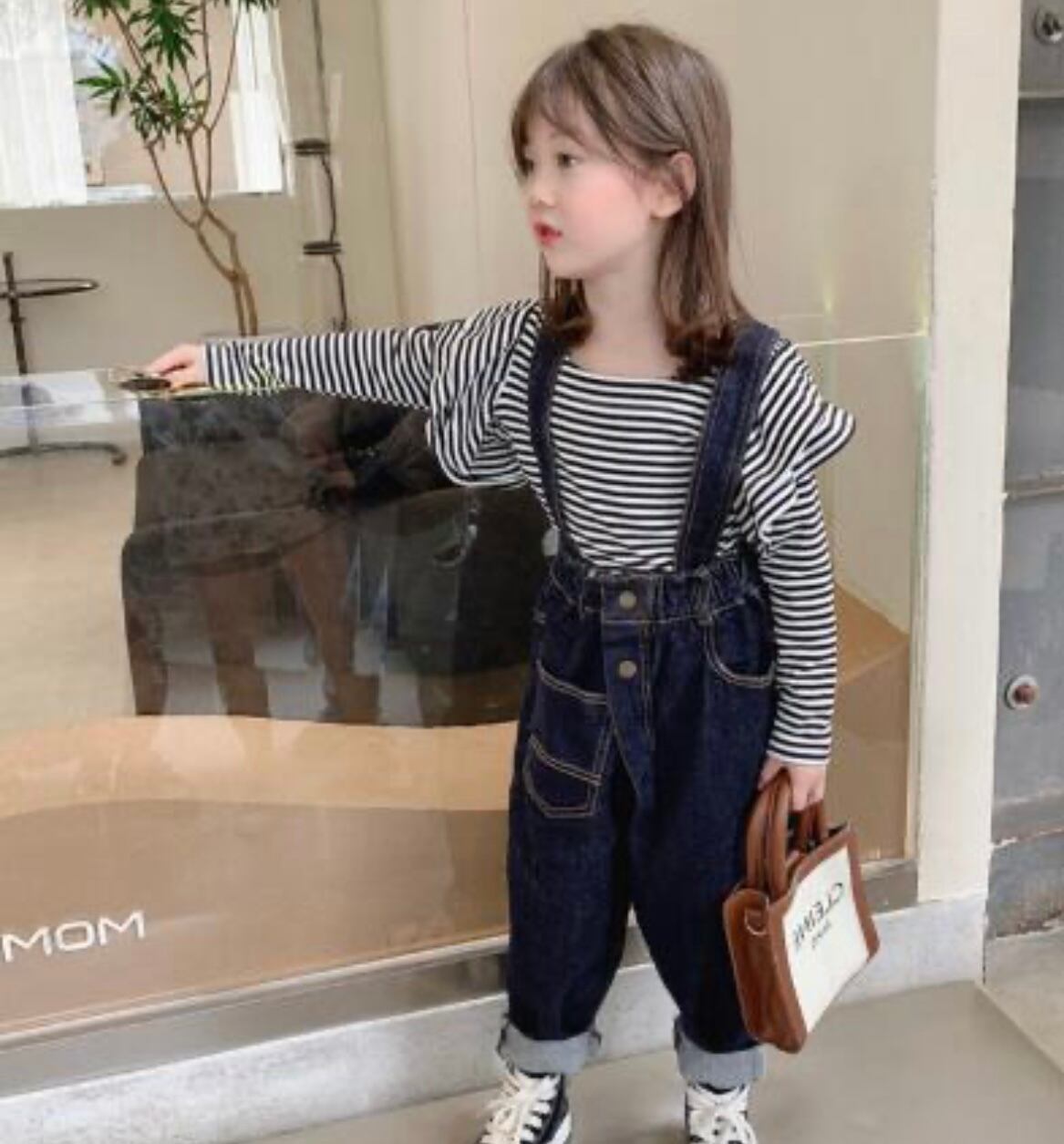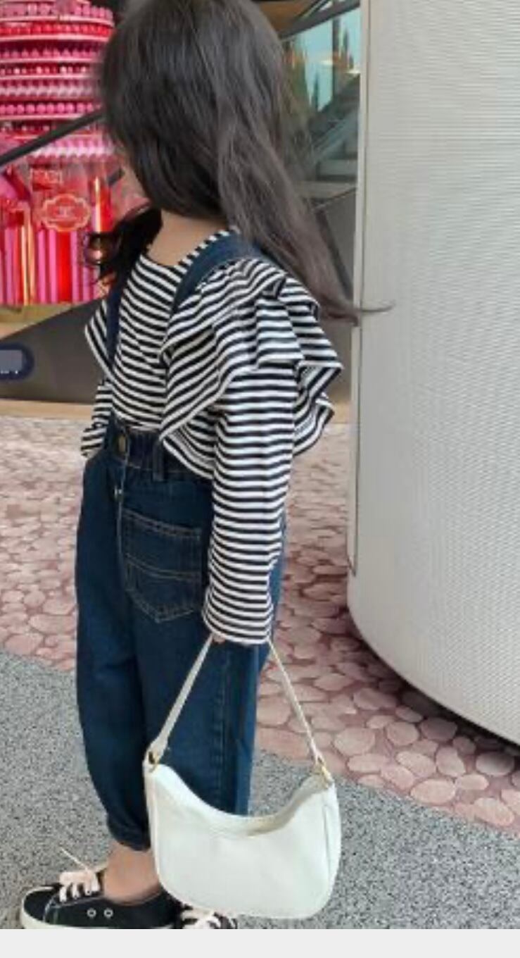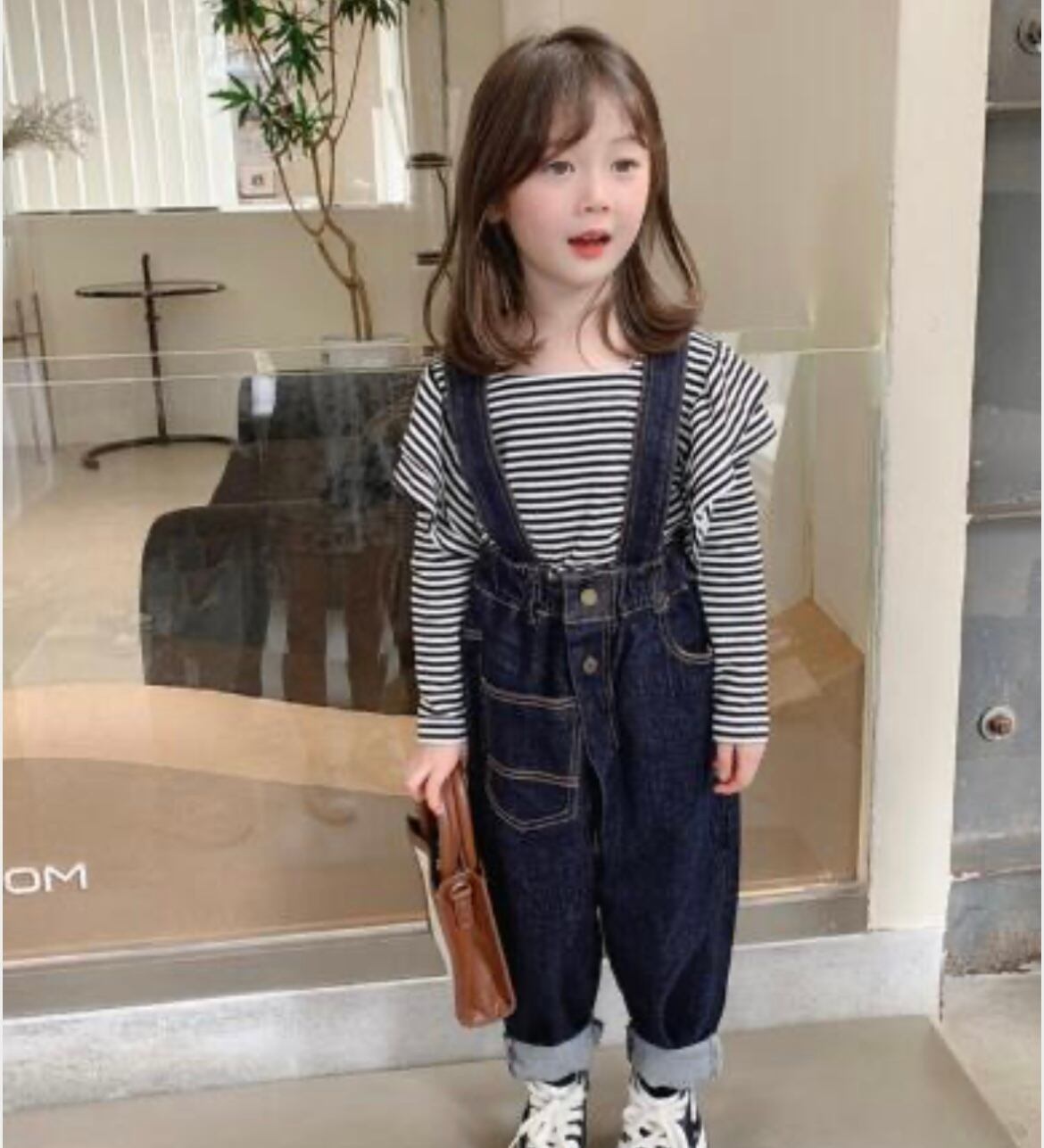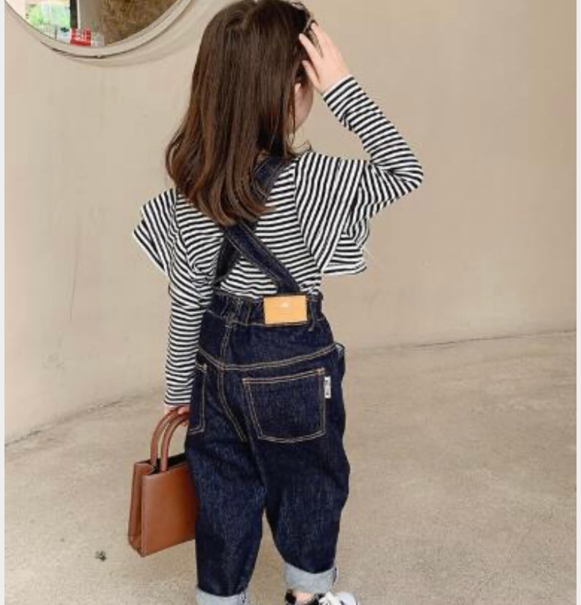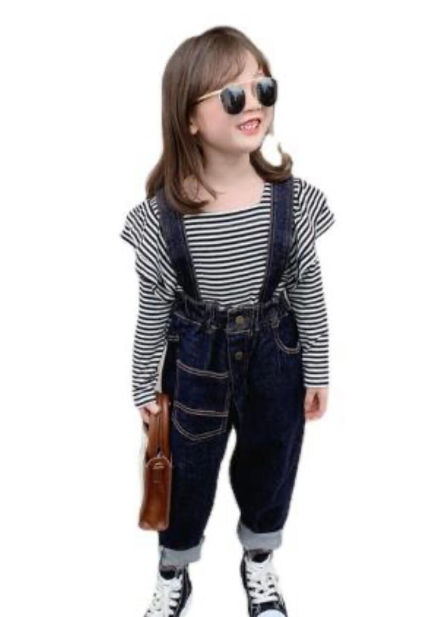 ★ ボーダーフリル長袖トップス デニムサロペット
